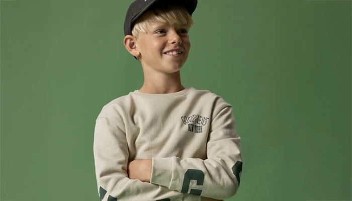 Παιδικό σετ 2 τεμαχίων φούτερ με χνούδι. Μπλούζα με στρογγυλή λαιμόκοψη και απλικέ ετικέτα SPRINT, δίχρωμες αθλητικές φάσες στα μανίκια και λάστιχο στ..